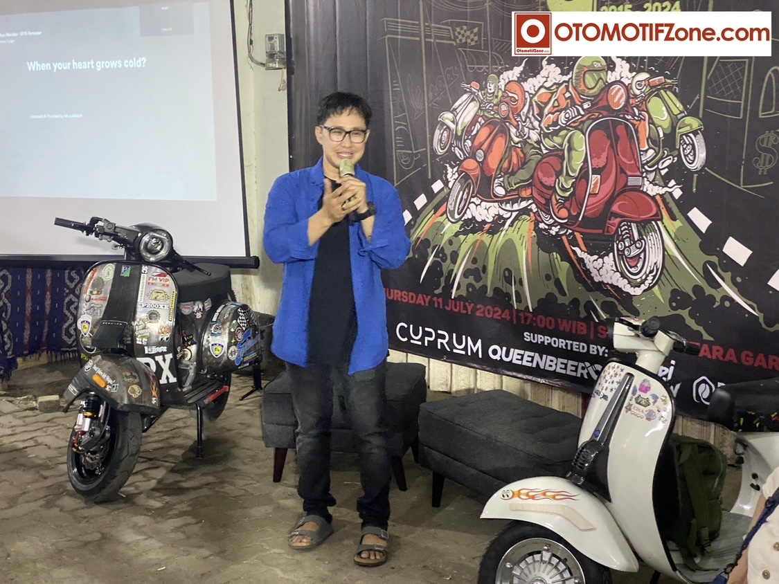 “Dulu Vespa identik dengan mogok. Berawal dari situ, pengen buat Vespa yang modern. Dulu juga emang belum punya biaya buat build, sampai akhirnya ada waktu buat wujudin itu. Sekarang jadi terkenal dengan Vespa Kencang, budayakan Vespa 200cc karena coba mendalaminya,” lanjut darinya sambil menikmati meriahnya anniversary.