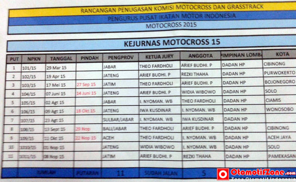OtomotifZone.com-Bogor. Carut marutnya penyelenggaraan balap motor ternyata juga menimpa penyelenggaraan kejurnas Motocross Indonesia tahun ini, meski PP IMI sudah mengeluarkan SK penyelenggaraan Grand Final Motocross tanggal 28-29 November 2015 di sirkuit Pakansari Cibinong.