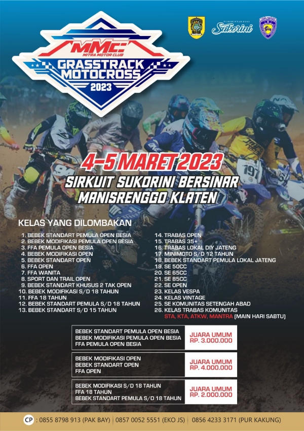 Hampir tiga musim tidak ada pergerakan akhirnya mereka merilis agenda MMC Grasstrack Motocross sirkuit Sukorini pada 4-5 Maret 2023. Tempat yang sudah tak asing lagi bagi para pembalap area Jawa. Kadang luar pulau juga hadir di Sukorini.