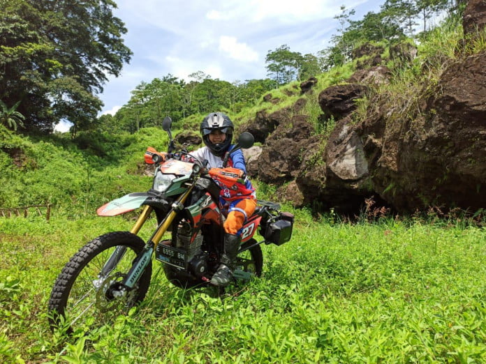 “Tampilannya terkesan lebih menantang apalagi memang untuk bermain di lintasan jalur yang cukup ekstrim, meski Kang Dede Daglug, sapaannya itu lebih suka menyebut jika ini adalah ‘motor piknik’. Alasannya memang motor ini selalu digunakan saat riding bersama rekannya pergi bertualang dan itu justru dinamakan sebagai piknik,” ujar Ega Afrizal.