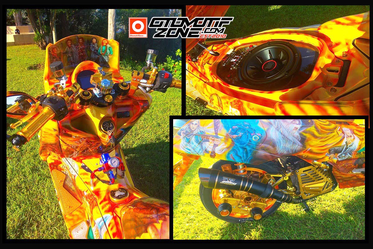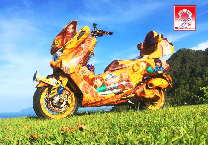 Semua lapisan cover bodi NMax besutannya ini dilapisi dengan kelir dominan kuning yang terdapat penggalan cerita dari kisah fiktif tersebut. Hebatnya lagi skutik milik Noveri ini meraih trophy juara 2 di kelas airbrush realis pada ajang 1st Anniversary HPCI Modification Contest yang berlangsung di kota Jayapura, Papua, pada akhir pekan lalu.