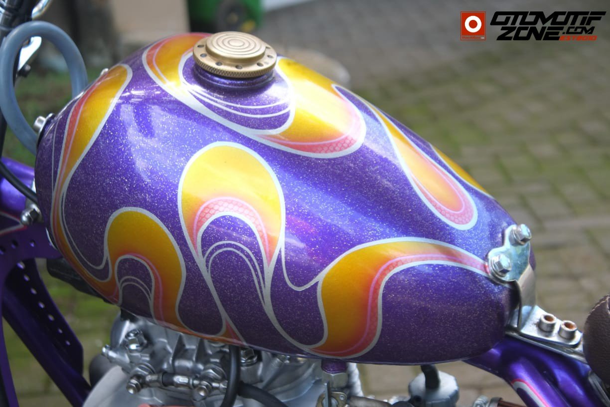 “Awal mula sih kepikiran ingin membangun motor chopper bobber karena saya sekali pengen punya beberapa koleksi motor yang beda. Tahun 2016 lalu sudah pernah usung modif ala caferacer, lalu scrambler. Setelah itu mulai kefikiran untuk membangun tema chopper bobber,” ungkap Wawan yang mengaku jika modif choppernya ini diinspirasi dari builder beken asal Jogjakarta, Queen Lekha Chopper.