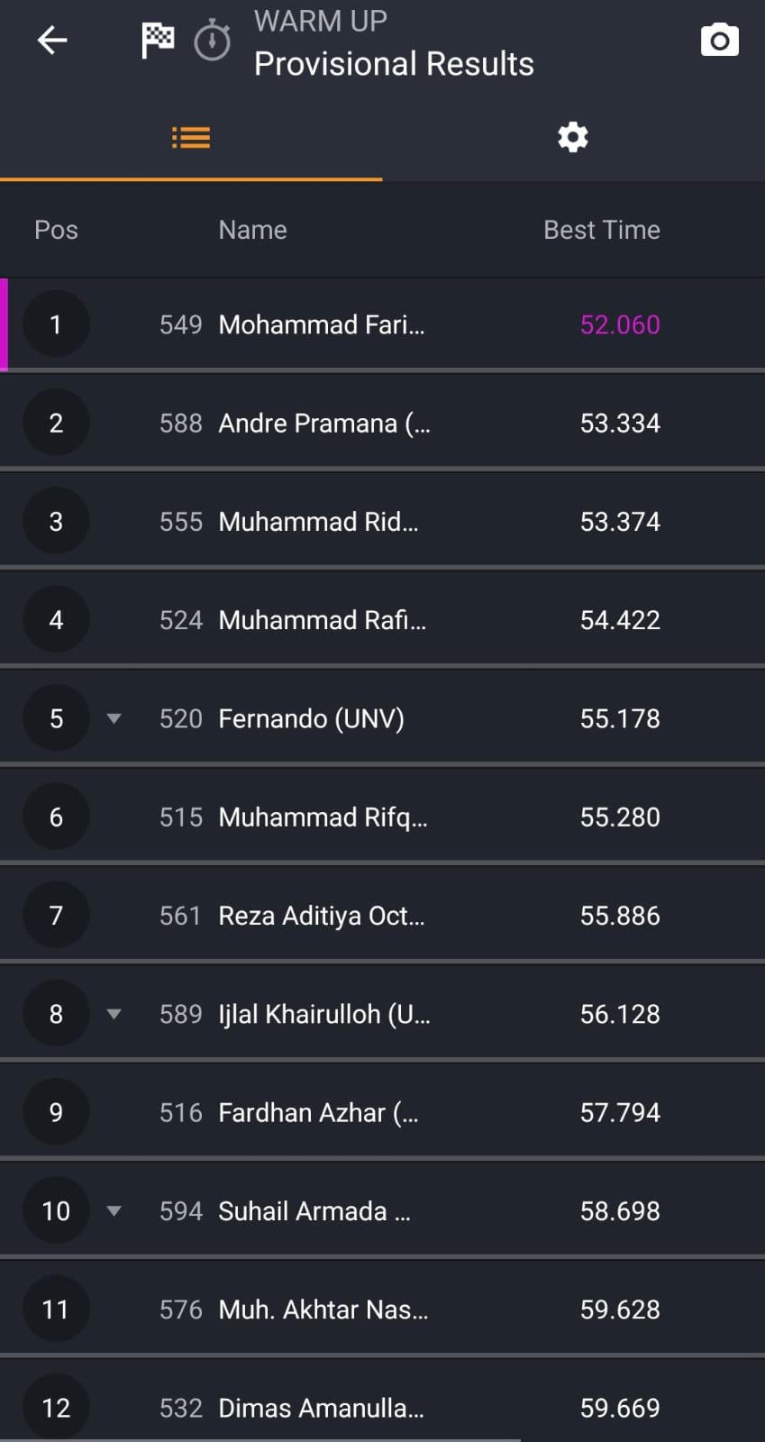Sesi Warm Up sendiri menjadi modal penting bagi para pebalap untuk mempersiapkan strategi balap. Catatan waktu Fariz yang stabil dan cepat menunjukkan potensinya untuk bersaing di papan atas.