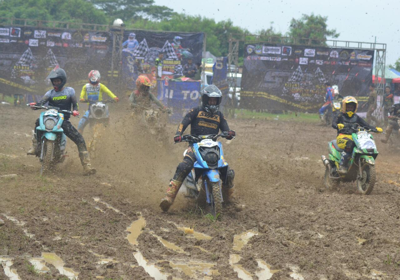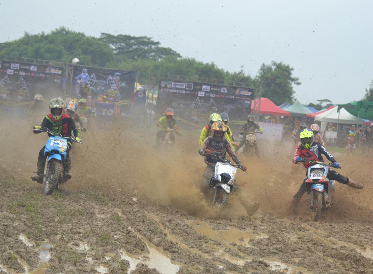 Faktor cuaca saat ini memang sedang intens dengan curah hujan yang tinggi dan hal itu ikut pula berimbas pada kondisi trek yang sempat diguyur hujan lebat di malam hari sehingga membuat tanah lintasan berubah menjadi lumpur tebal dan lengket. Di satu sisi pastinya semua itu bakal menjadi tontonan seru saat melihat motor matik yang dikebut para pembalap harus berjibaku dalam melewatinya.