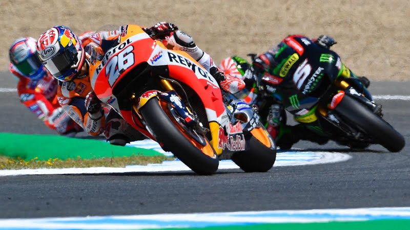 OtomotifZone.com – Spanyol. Start dimulai dan Pedrosa langsung meluncur cepat untuk memimpin lomba. Tampil apik Pedrosa mampu mempertahankan posisi dari awala lomba yang terus dikawal oleh rekan satu timnya Marc Marquez di posisi dua.