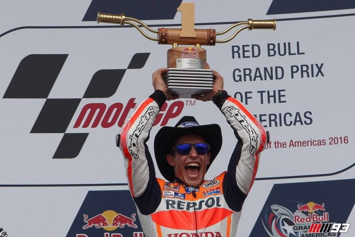 OtomotifZone.com – Austin. Mendominasi sejak latihan bebas, Marc Marquez kembali memenangi balapan di Austin, Senin (11/4) dini hari. Atas kemengannya ini, baby alien secara beturut-turut menjadi jawara di Austin dengan 4 kali kemenangan.