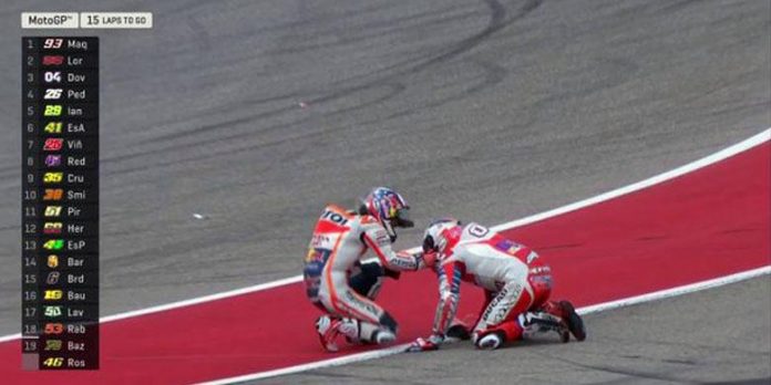 Pedrosa langsung menghampiri Dovisioso dan meminta maaf kemudian melanjutkan balap.