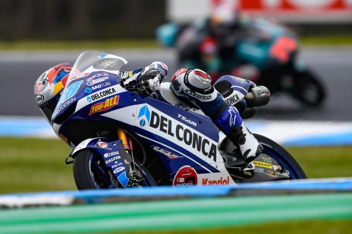 OtomotifZone.com – Australia. Pembalap tim Del Conca Gresini Moto3, Jorge Martin berhasil meraih pole position ke sembilanya di kelas Moto3 gelaran MotoGP Australia 2018 yang berlangsung di Sirkuit Philip Island, Australia, Sabtu (27/10). Martin meraih catatan waktu 1:36.591detik unggul -0.257detik dari Darryn Binder.