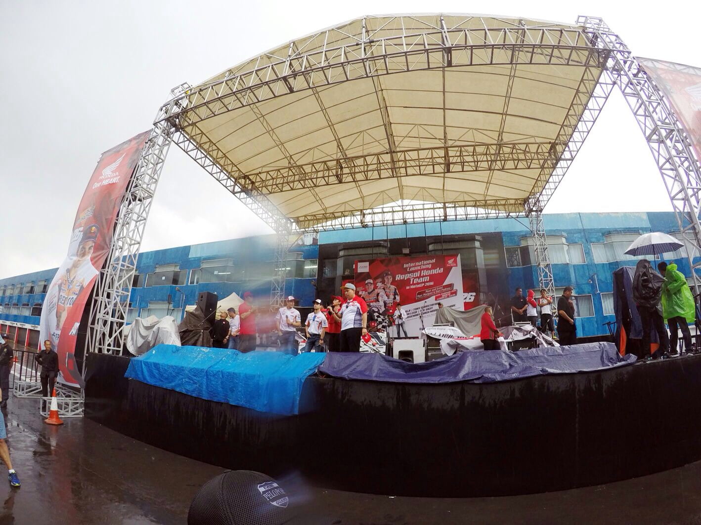 “Luar biasa antusiasme kalian, meskipun hari ini hujan, kalian tetap setia menunggu kami. Saya senang sekali berada di sini lagi,” tambah Pedrosa yang diamini Marquez.