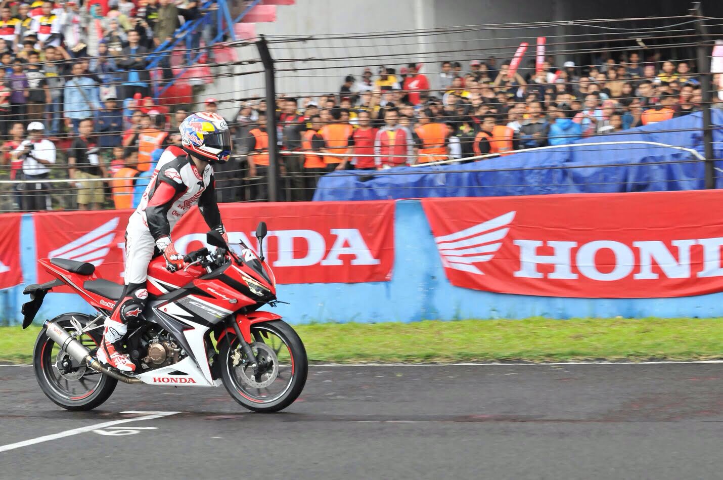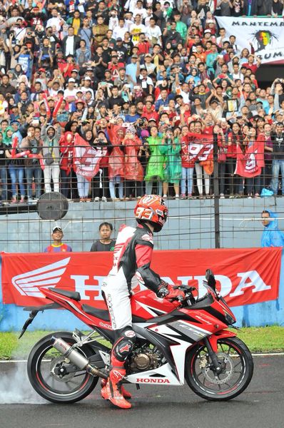 Setelah melaunching Repsol Honda Team, kedua pembalap dunia ini mengendarai All New Honda CBR150R di sirkuit Sentul untuk menghibur fansnya sekaligus berpamitan meninggalkan Indonesia untuk mempersiapkan sesi test resmi kedua Pra Musim 2016 di Australia.
