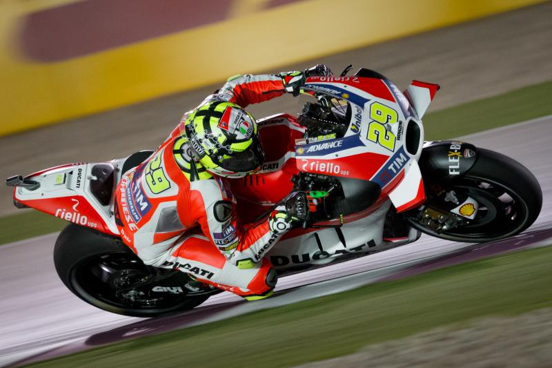 OtomotifZone.com – Qatar. Andrea Iannone menjadi pebalap tercepat pada sesi latihan bebas 3 di Qatar. Pebalap Ducati Team tersebut mencatatkan waktu terbaik 1 menit 54.639 detik atau lebih cepat dari Jorge Lorenzo yang berada di urutan kedua dengan waktu 1 menit 54.776 detik.