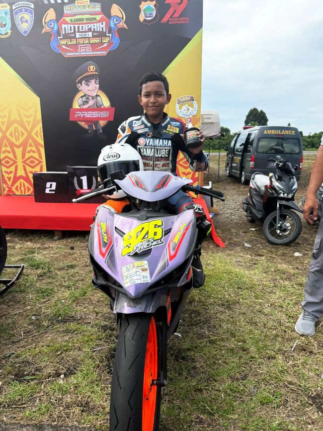 “James memang kurang tertarik di roadrace. Setelah event di Sorong dia sampaikan keinginannya untuk latihan kemudian kami persiapan hanya tiga hari dan berangkat ke manokwari untuk ikut balap, puji Tuhan diberikan yang terbaik di podium ke 3 pada race pertama dan kedua,” ujar sang ayah.