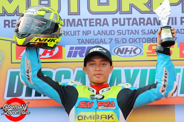 Otomotifzone.com – Padang. Pembalap Suhandi Padang 88 Sari Murni NHK Racing, Riky Ibrahim juara di kelas MP3 Kejurnas Motoprix Padang 2017 yang berlangsung di sirkuit Sutan Syahrir, Tabing,Padang, Minggu (8/10). Keberhasilan Riky tak lepas dari ketidak beruntungan dua rival terberatnya yakni Daffa Krisna Putra dan Tofani Wijaya.