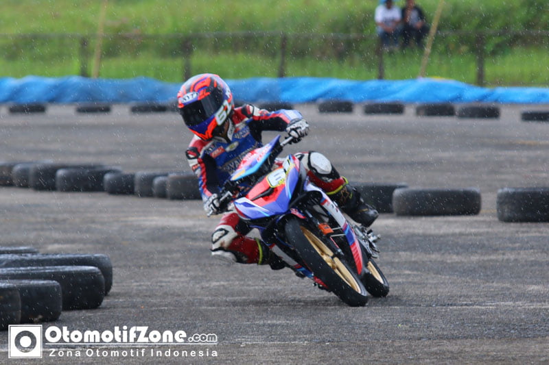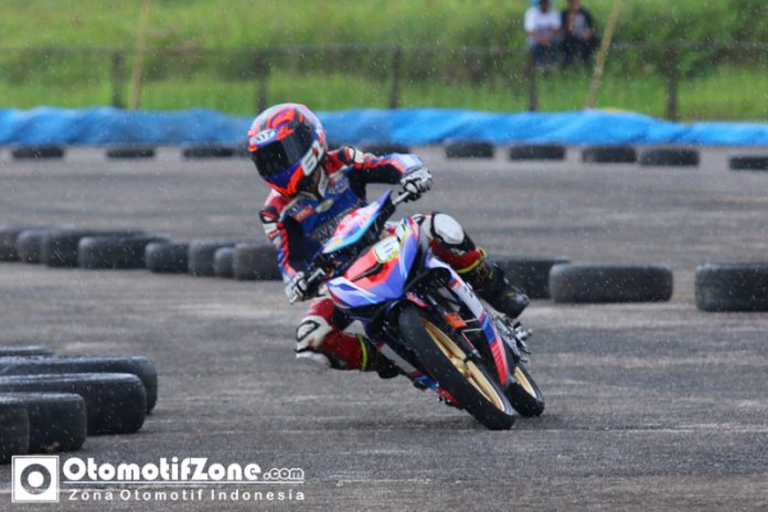 Otomotizone.com – Padang. Pembalap tim Yamaha Yamalube Denas FDR Pirelli HR KYT KYB Mimaki, Ahmad Syaifullah berhasil menjadi yang tercepat pada sesi kualifikasi di kelas MP5 Kejurmas MotoPrix Region 1 Seri 2 Padang 2018, brrlangsung di sirkuit Sutan Syahrir, Tabing, Padang, Sabtu (14/4). Ahmad Syaifullah atau baisa di kenal dengan nama sapaan Ipul berhasil mengunci pole position dengan catatannwkatu 57.368detik.
