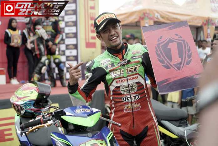 “ Saya bermain sedikit memaksa karena motor saya belum ketemu power atasnya yang pas mas. Saya akui motor Ilham memiliki power atas yang kuat. Jadi saya bermain taktik di race 2. Saya memaksa melakukan pengereman yang lebih dekat pada tikungan pertama agar bisa ambil alih posisi yang saat itu dipegang Ilham. Lalu saya coba konsisten disetiap lap. Sedikit ada kesalahan di lap akhir tapi saya bisa menyentuh finish terlebih dahulu,” ujar Anggi Permana langsung kepada OtomotifZone.com.
