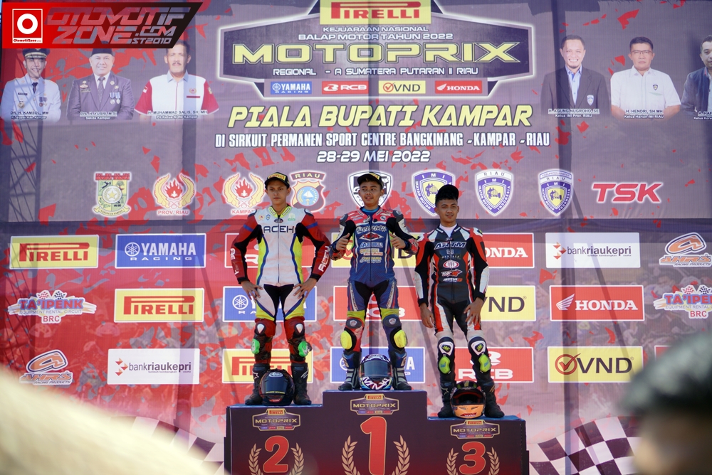 OtomotifZone.com – Bangkinang. Keseruan Kejurnas Motoprix Riau bisa terbilang sangat istimewa (28-29/5/22) di Sirkuit Sport Center Bangkinang, Riau. Tidak hanya di Race 1 saja, tapi keseruan terjadi juga pada race 2. Kali ini tim redaksi mau bahas di race 2 Novice. Setelah menunggu sekian lama, panitia memutuskan kalau M. Silmi berhak menjadi juar pertama di race 2.