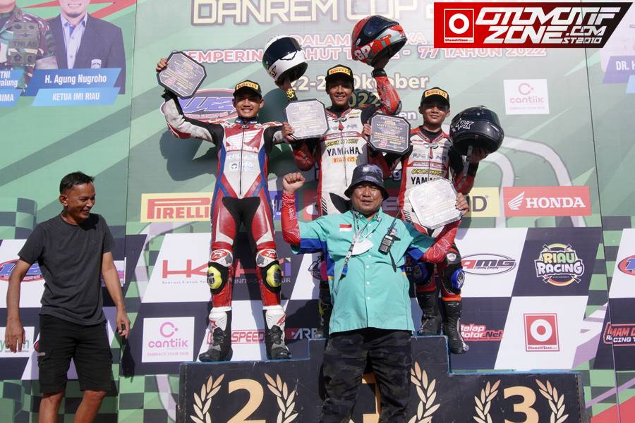 OtomotifZone.com – Riau. Tidak kalah hebat pertarungan pebalap Rookie di Kejurnas Motoprix Region A putaran 4 saat race 1 (22/10/22) di Sirkuit Sport Center Bangkinang, Riau. Pertarungan kelas pebalap pebalap belia ini menyajikan tontonan menarik. Dua pebalap Radja Air duduki podium, Alvin juara 1.