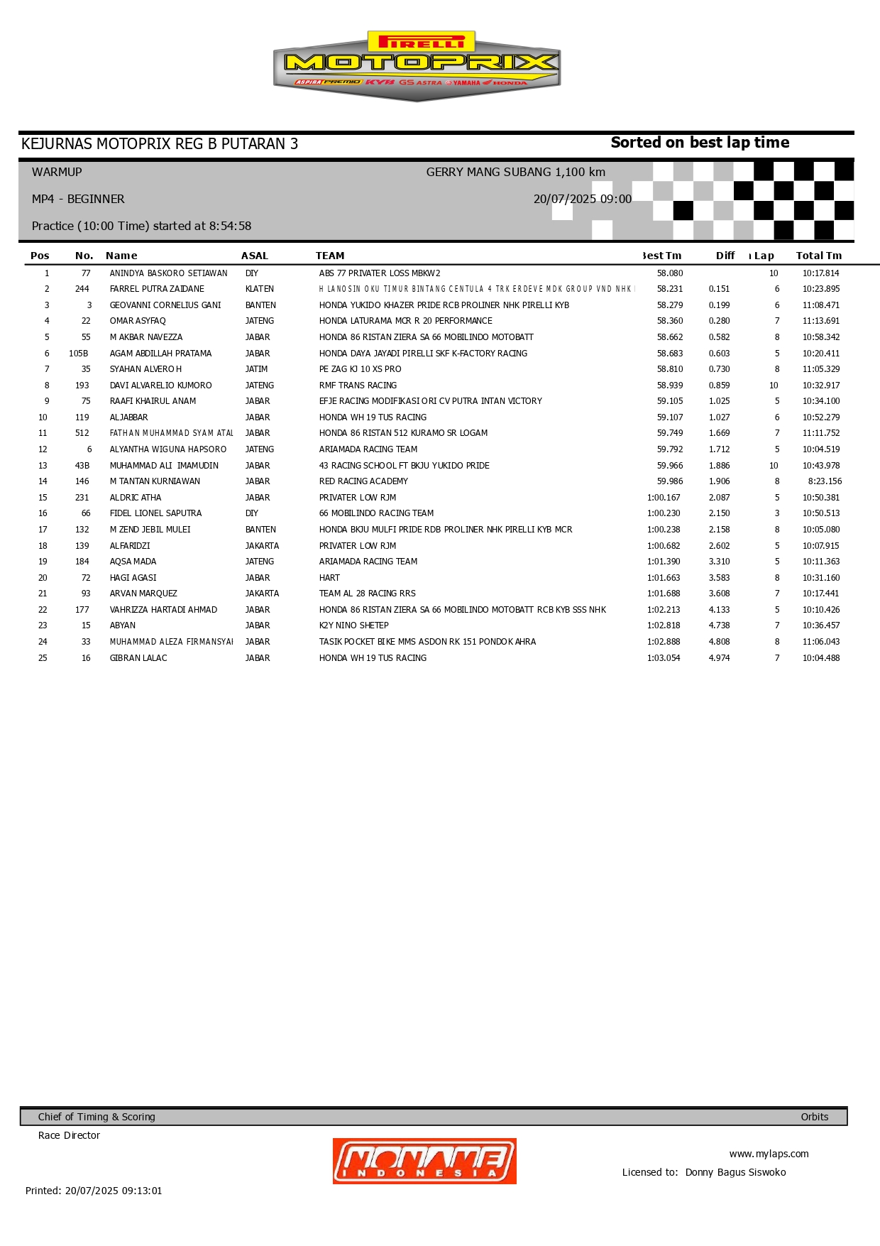 Dengan catatan terbaik di Warm Up, peluang Baskoro untuk merebut kemenangan di Race 2 pun terbuka lebar. Konsistensi dan fokus akan jadi kunci, mengingat persaingan di kelas Beginner tak kalah sengit.