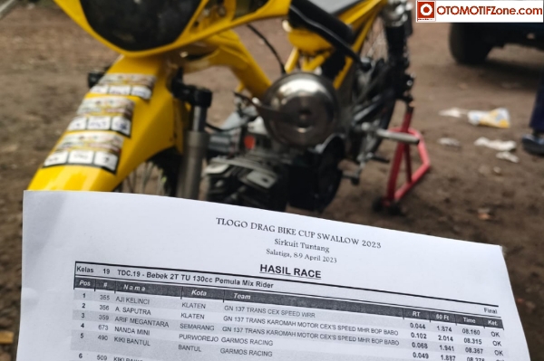 “Dua minggu ini ikut event ra.. minggu lalu dapat podium 2-3. Dan di Tlogo DragBike Cup ini bisa sapu tiga podium sekaligus. Next kita maksimalkan lagi dengan ubahan rangka rencananya,” kata Gantol, sapaan Ganang AP yang aslinya lebih banyak mengenal sosok ini di dunia grasstrack area Jateng.