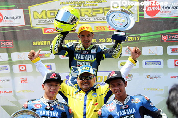 OtomotifZone.com – Subang. Richard Taroreh pembalap asal Manado yang bernaung di tim Yamaha Yamalube Jasti Putra HK FDR 549 Kaboci berjuang sejak lap awal hingga akhir untuk menuai podium pertama. Mengawali start terdepan Richard Taroreh bersaing dengan Rafid Topan dan Doohan Akbarruzaman. Namun Doohan yang berada di posisi tiga tidak mampu bertahan lama dan harus terlepar dari tiga besar karena terjatuh pada tikungan pertama.