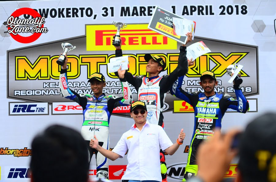 Lanjut pembalap asal Jawa Tengah itu “ Saya memulai balapan dari Grid posisi 2 pada lap awal mas. Saya berada di posisi 2 di belakang Aldiaz Aqsal. Saya mencoba untuk sabar sampai akhirnya saya bisa mengovertakenya di tikungan ke-6. Saya bisa tetap konstan sampai akhir lap dengan menggunakan ban pirelli dengan grip yang kuat dan awet,”
