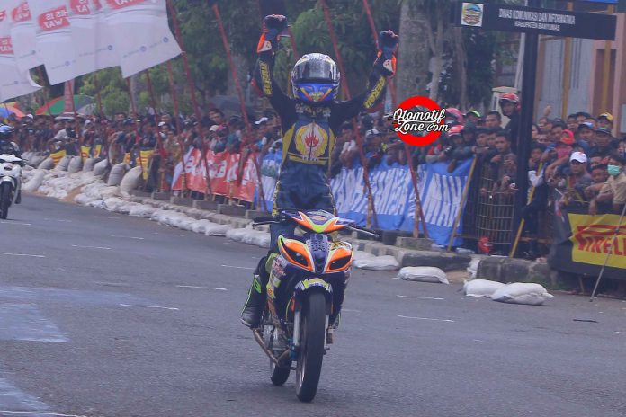 “ Tadi aku awal lap sempat tercecer mas. Tapi aku terus berusaha untuk maju. Lalu aku mampu berada di posisi kedua. Tapi di pertengahan lap aku lihat Aldi terjatuh dan langsung aku manfaatkan. Aku langsung ambil dan aku main aman karena jarak aku jauh mas,” ujar anak didik Wawan Wello tersebut.