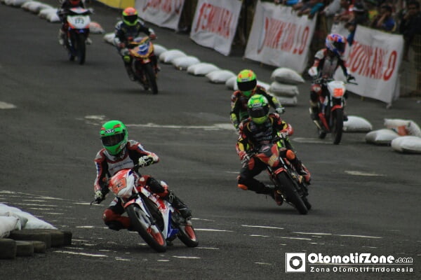 Pemula yang naik bukan pemula kacangan, pembalap yang balik belum kendor. “Beruntung masih hafal dengan trek dadakan. Saya sudah off dari Motoprix sejak 2009. Masih agak kaku sebenarnya,” kata Rafid Topan Sucipto bersama Yamaha Syafina yang bisa dikatakan double comeback. Pertama balik ke Motorprix dan kedua balik ke Yamaha.