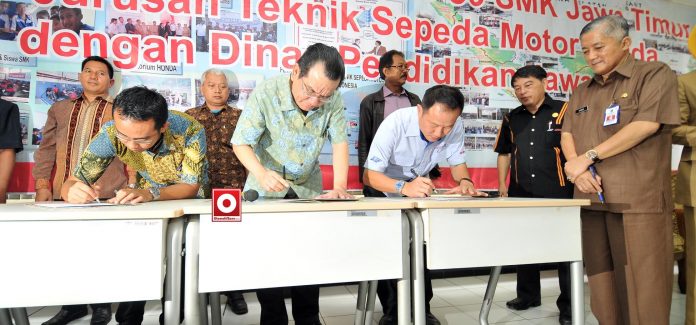“Program KTSM Honda telah dumulai sejak tahun 2009, dengan menyusun silabus khusus yang bisa diimplementasikan di tingkat SMK, dan dilanjutkan dengan sarana fisik berupa alat praktik dan laboratoium di sekolah,” jelas Handi Hariko, Senior Manager Technical Service & Training Dept. AHM seusai penandatanganan Memorandum of Understanding (MoU) KTSM Honda antara MPM Motor dengan 30 SMK di Jawa Timur di Training Center MPM, Gedangan, Sidoarjo, Selasa (9/12).