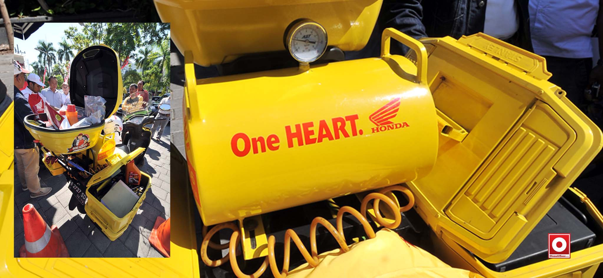 Lebih lanjut Suwito menjelaskan, unit motor layanan HHS sudah didesain sesuai kebutuhan. Contohnya dengan penambahan box untuk membawa perlengkapan bengkel dan sparepart. Tidak hanya itu, tabung gas juga didesain pada motor.