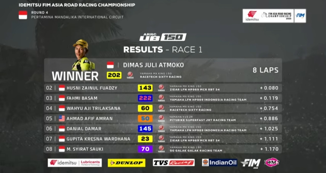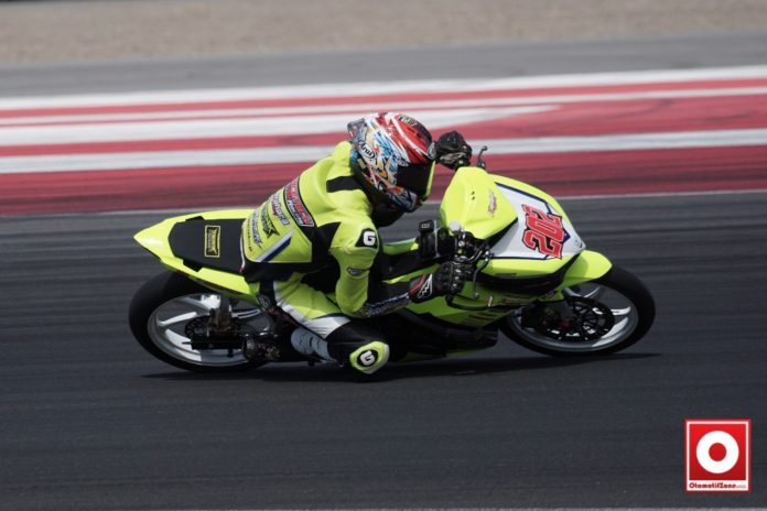 OtomotifZone.com – Lombok. Race 1 UB150 Seri 4 Asia Road Racing Championship sirkuit Mandalika, Lombok, Nusa Tenggara Barat 29-31 Agustus 2025 start terlihat seperti santai. 32 pembalap melakukan start bersama bagaikan massa yang siap menyerang.