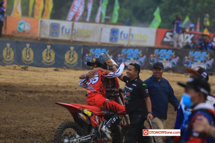 OtomotifZone.com-Salatiga. Keputusan nekat Aep Dadang berbuah manis, meski masih cukup umur turun balap dikelas MX 85cc, namun sang crosser nasional asal Soreang Jawa Barat ini membuat keputusan cemerlang, sang putra naik kelas sebelum waktunya dan berbuah podium.