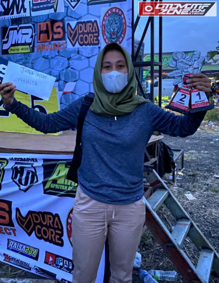OtomotifZone.com – Bekasi. Neng Dolis, berhasil merebut gelar juara umum di kelas Matik Wanita dalam ajang Open Grasstrack Pesona Wanajaya 2021, di sirkuit Pesona Wanajaya, Cibitung Bekasi, Jawa Barat, Minggu, (25-26/9) kemarin. Pembalap asal Tasikmalaya ini, torehkan total nilai 47 poin setelah juara pertama di kelas Matik Wanita dan juara dua di kelas FFA Wanita.