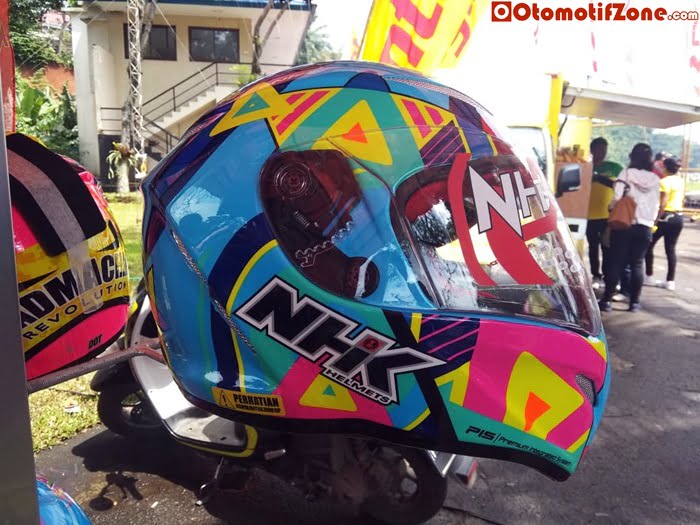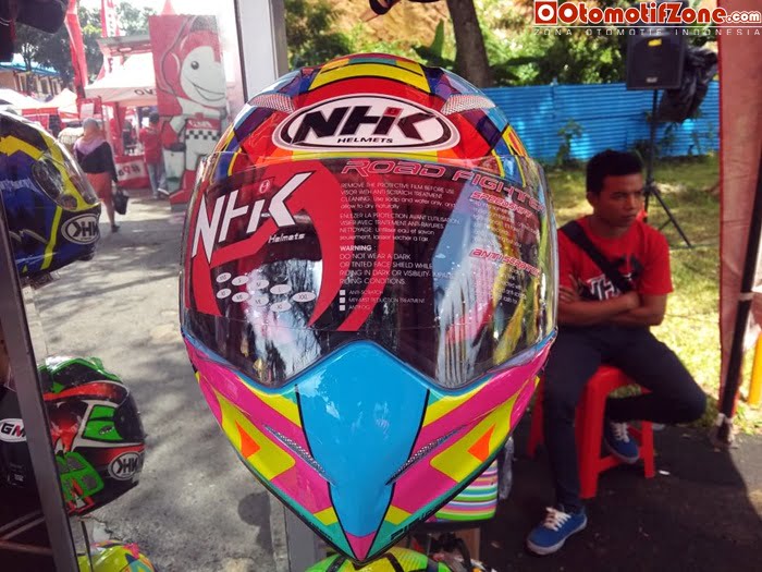 “ Iya Helm NHK Pocket bike atau lebih dikenal di Indonesia dengan MINIGP kita keluarkan. Kali ini kita perkenalkan yang Viber. Ada lima tampilan yang kita perkenalkan. Dan kita jual dengan harga 1.4 yang viber. Tapi kita ada yang carbon mas. Kalau karbon kita akan jual dengan harga 1.8 juta,” ujar Erol pihak NHK Indonesia.