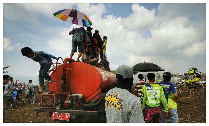 “Kami sengaja menyiagakan truk tanki air. Tujuannya agar secepatnya dapat melakukan penyiraman sirkuit saat debu mulai muncul karena tanah sirkuit yang kering,” jelas Samsul Huda penyelenggara event.
