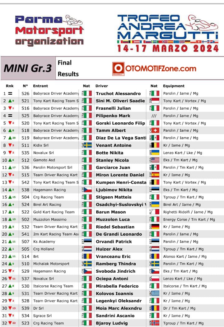 Pegokart yang kini bernaung dibawah factory team Tony kart Racing team Italy memang memberikan hasil terbaiknya dipenampilan kali ini, bukan perkara mudah dengan race panjang nan melelahkan dan harus berjuang heat demi heat untuk menjadi yang terbaik dari total 42 Pegokart bule adalah sebuah bukti kualitas dirinya diajang karting Internasional.