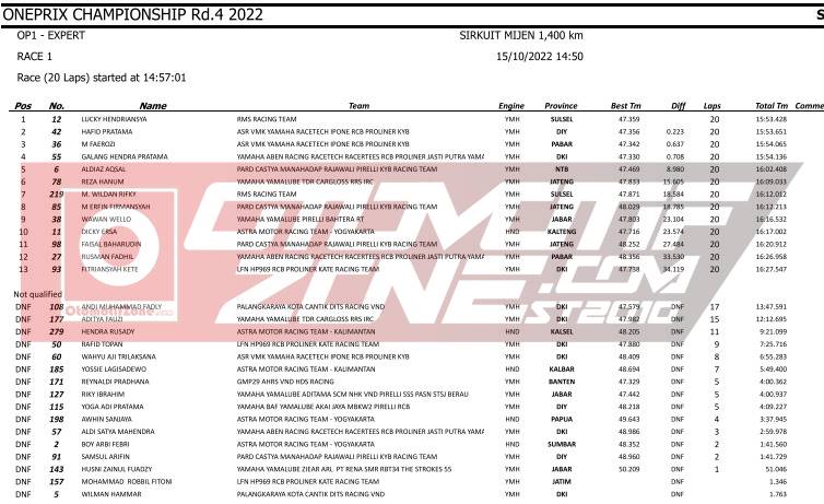 OtomotifZone.com – Semarang. Benar saja prediksi tim redaksi, bahwasannya gelaran Oneprix Putaran 4 ini akan lebih seru. Terutama pada persaingan pada kelas Expert. Karena perolahan waktu pebalap sangat tipis perbedaannya. Tapi benar benar luar biasa gelaran pada Oneprix putaran 4 diselenggarakan (15-16/10/22) di Sirkuit Mijen, Semarang, Jawa Tengah.