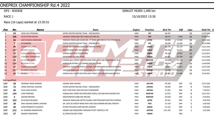 Tapi apakah Veda bisa mempertahankan gelaran juaranya dan mampu merajai Race 2 besok? Kita tunggu kabar beritanya hanya di OtomotifZone.com
