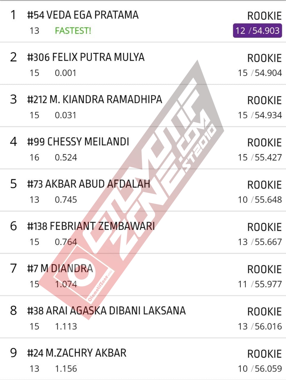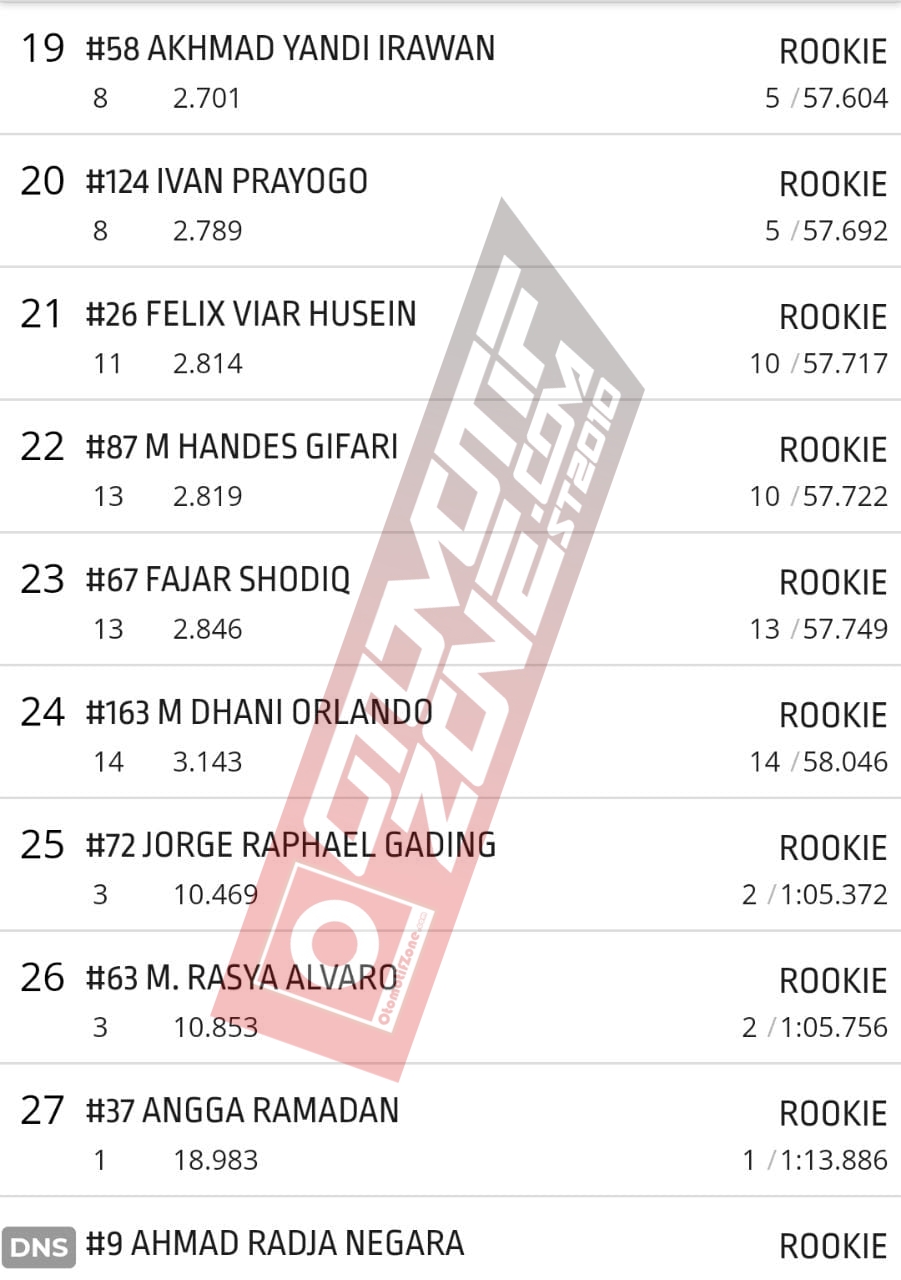 Persaingan sengit tim redaksi pantau antara Felix dan Veda dari tim ART Yogyakarta. Felix dari pasukan RRS tidak mau kalah dengan pebalap lain. Felix berhasil menjadi tercepat kedua dan Veda tercepat pertama. Felix meraih catatan waktu 54.904 detik. Dan Veda 54.903. Catatan waktu dua pebalap ini sangat rapat. Berikut catatan waktunya: