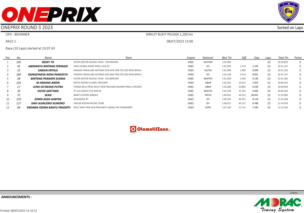 Ini adalah penampilan yang sangat luar biasa. Lalu apakah Resky bisa kembali menjadi juara di race 2 nanti? Kita tunggu saja kabar beritanya hanya di Otomotifzone.