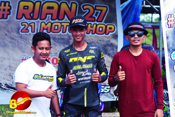 ” Lumayan sulit juga sih persaingan di kelas ini dengan pembalap lainnya soalnya skill dan pengalaman mereka hampir sama, Kalo kendala motor sih smuanya baik-baik saja tadi cuma suspensi belakang aja yang kurang joss makanya gak bisa terlalu maksimal, tapi syukurlah bisa dapat di kelas ini”, cetus Aldis bernomor start 24.