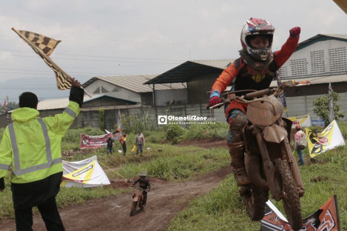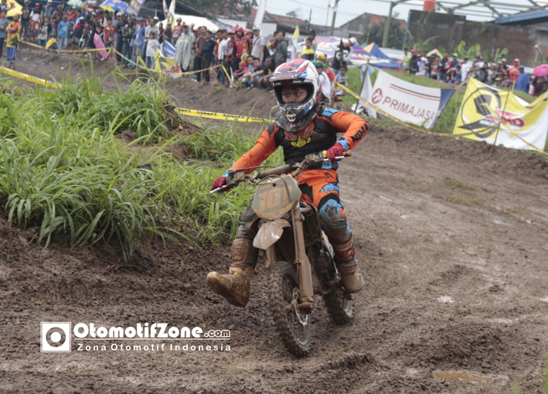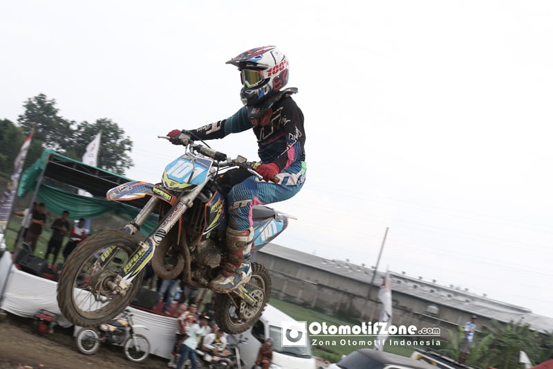 OtomotifZone.com-Bandung. SE 65cc memang sudah dipegang rupanya oleh Panji Mahesa dimulai dari awal start Moto 2 yang langsung meninggalkan rival-rivalnya saat sudah memasuki 4 tikungan dan 2 lompatan sebelum memasuki spot Lumba-lumba yang mana panji bisa meninggalkan rival-rivalnya di titik tersebut. sempat tersentuh beberapa kali oleh Darish saat moto 1 namun kembali Panji Mahesa tidak rela memberikan Tahta tertinggi kepada Darish Nail Budiman.