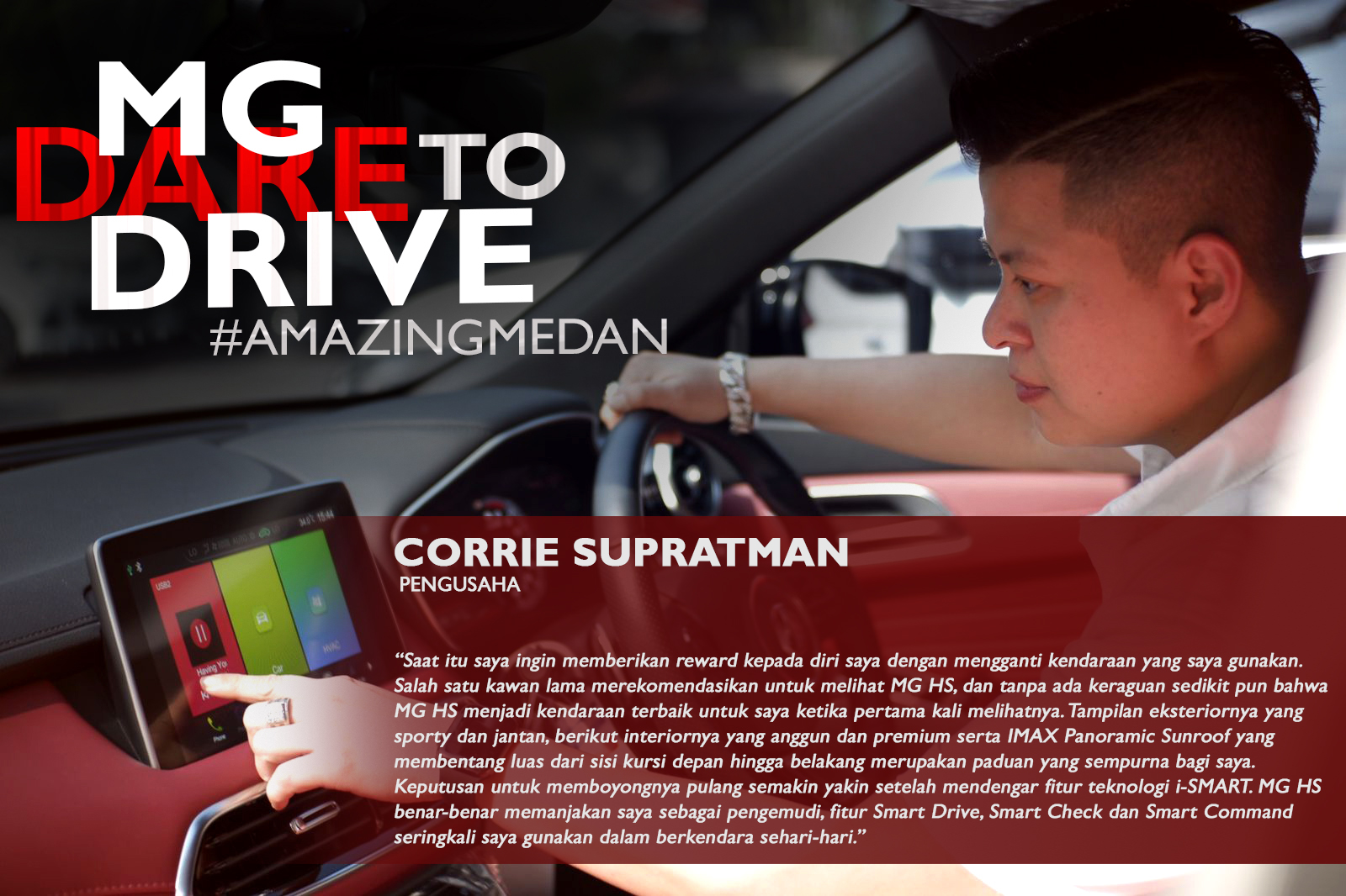 “ Masyarakat kini sangat lekat dengan pemanfaatan teknologi untuk dapat mempermudah aktifitas sehari hari. Dan hal tersebut yang membuat kami semakin yakin untuk terus mengembangkan seluruh kendaraan MG dengan pemanfaatan Teknologi berbasis internet. IoT (Internet of Things) akan terus juga dapat merevolusi industri otomotif untuk dapat meningkatkan fungsionalitas sebuah mobil, hingga mengubah kebiasaan berkendara para penggunanya. Implementasinya juga telah membawa perubahan besar pada kendaraan dari segi keamanan, kenyamanan, dan gaya hidup yang semakin terhubung ke depannya,” ujar Arief Syarifudin Marketing and PR Director MG Motor Indonesia