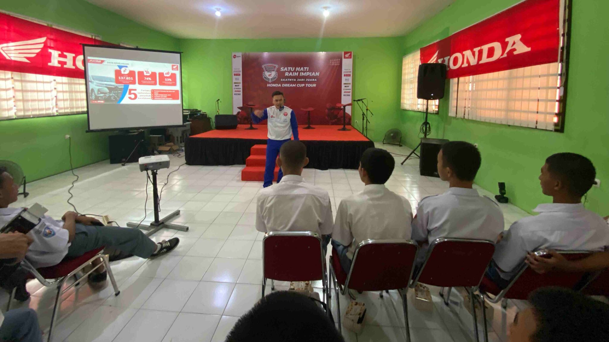 OtomotifZone.com – Tasikmalaya. Pembalap AHRT (Astra Honda Racing Team) Gerry Salim memberikan pengalaman di hadapan ratusan peserta HDC Tour di Tasikmalaya Jawa Barat. Honda Dream Cup (HDC) Touring berlangsung di Sekolah Menengah Kejuruan Negeri (SMKN) 4 Tasikamalaya, Sabtu (25/11/2023).