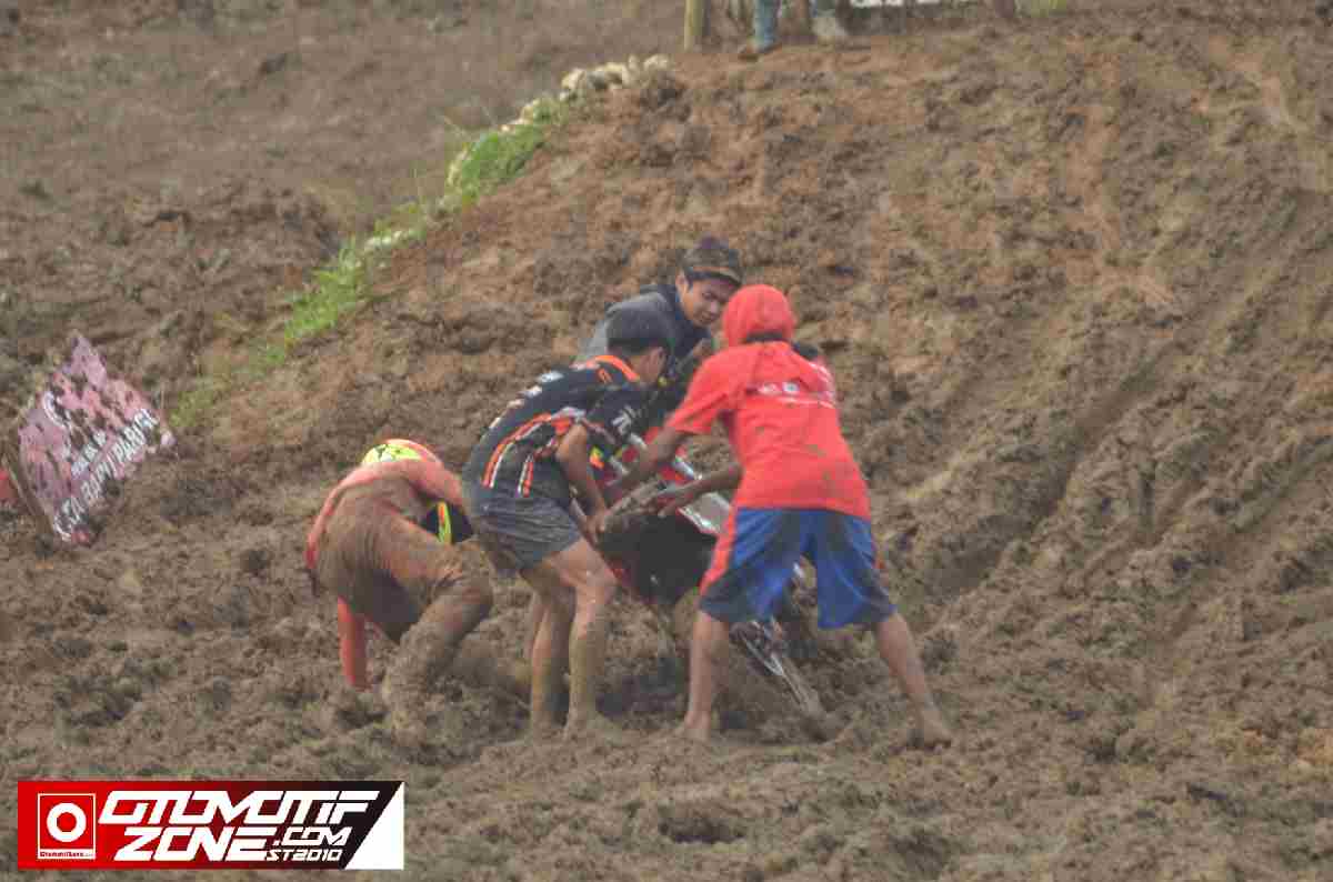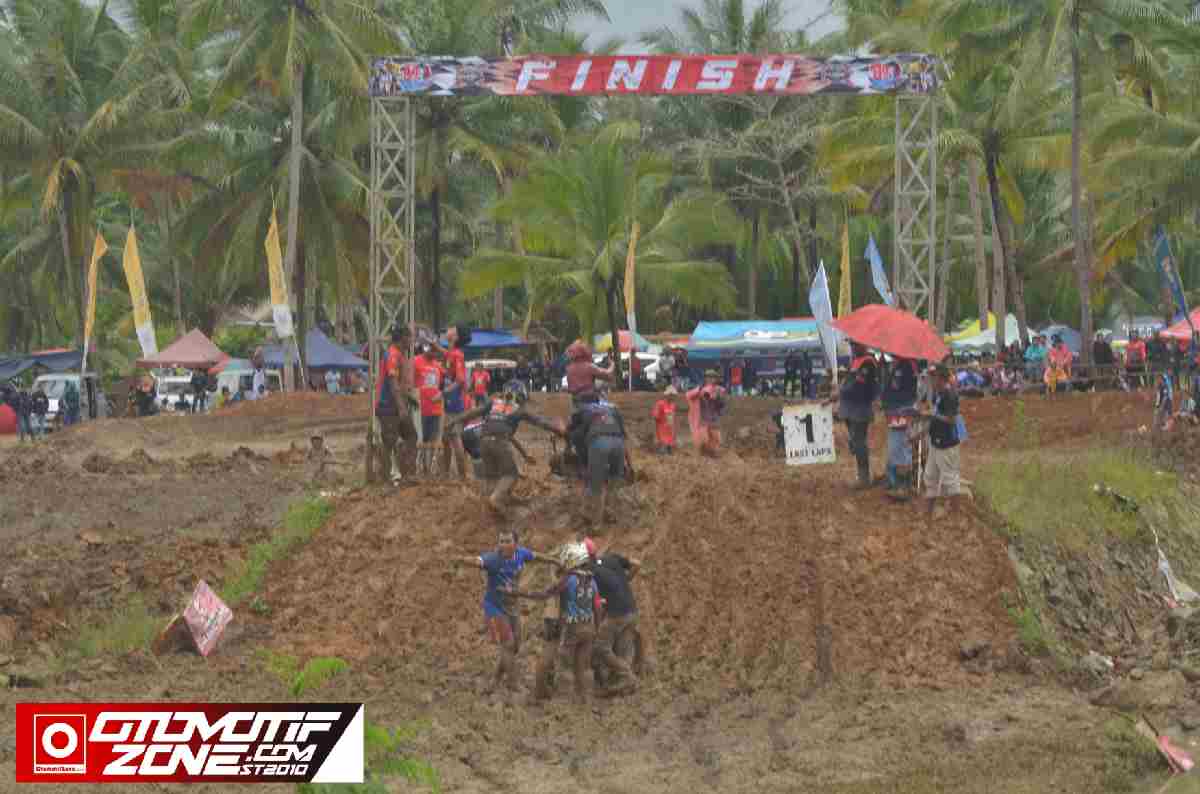 Pasalnya sirkuit licin dan lumpurnya pun tebal dan juga lengket, sehingga sulit untuk naik ke table top tempat garis finish berada.