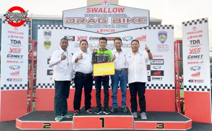 OtomotifZone.com – Surabaya. Penampilan cemerlang pembalap Drag Bike Kepulauan Riau atau Kepri dalam pagelaran Final Kejurnas Drag Bike Seluruh Region 2018 (2/12) di Sirkuit Gelora Bung Tomo, Surabaya. Adji Gondo Susilo pembalap Kepulauan Riau berhasil harumkan nama Daerahnya dengan menjadi juara Nasional Drag Bike 2018. Region 1 mewakilkan tiga pembalapnya untuk bersaingn dengan pembalap seluruh Indonesia itu