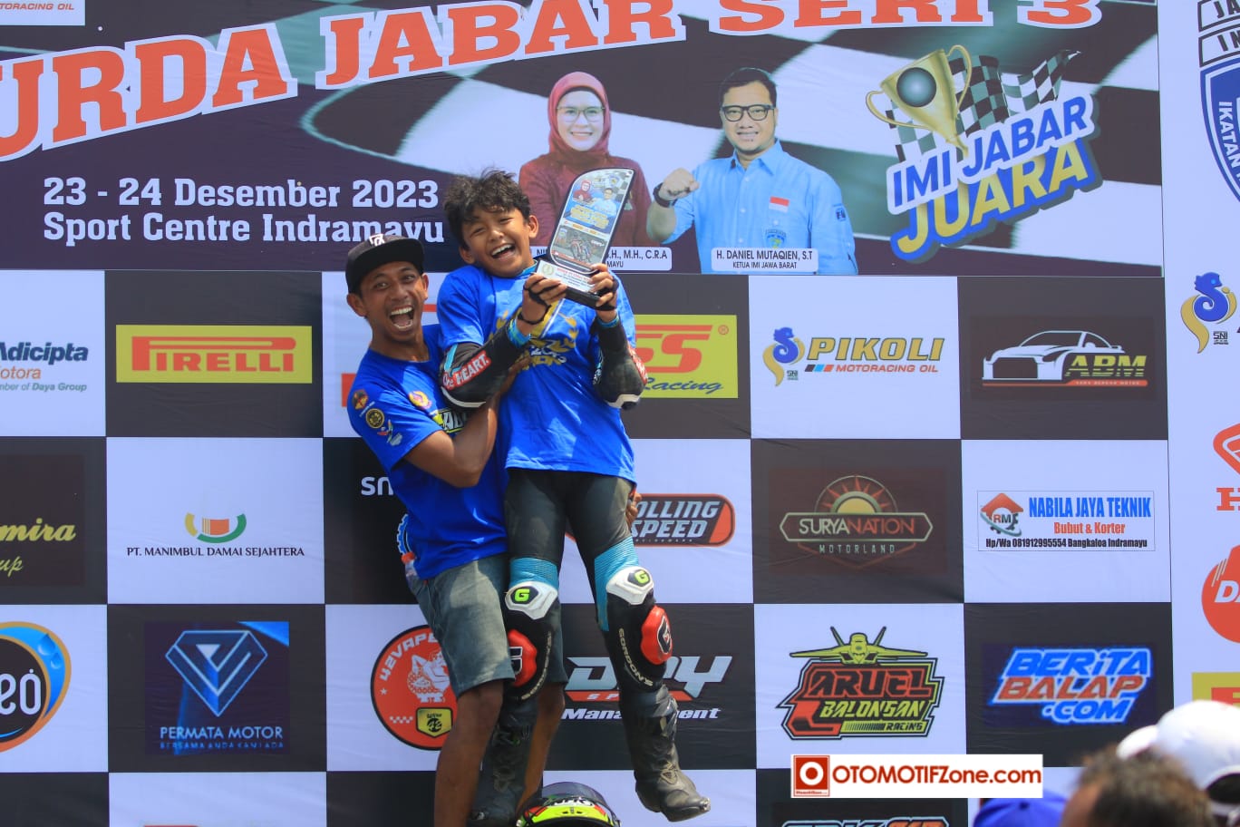 Meski perdana turun dikelas Rookie, putra legenda balap nasional asal Bandung Irvan Octavian, Juna langsung sabet juara umum kejurda Balap Motor IMI Jabar 2023.