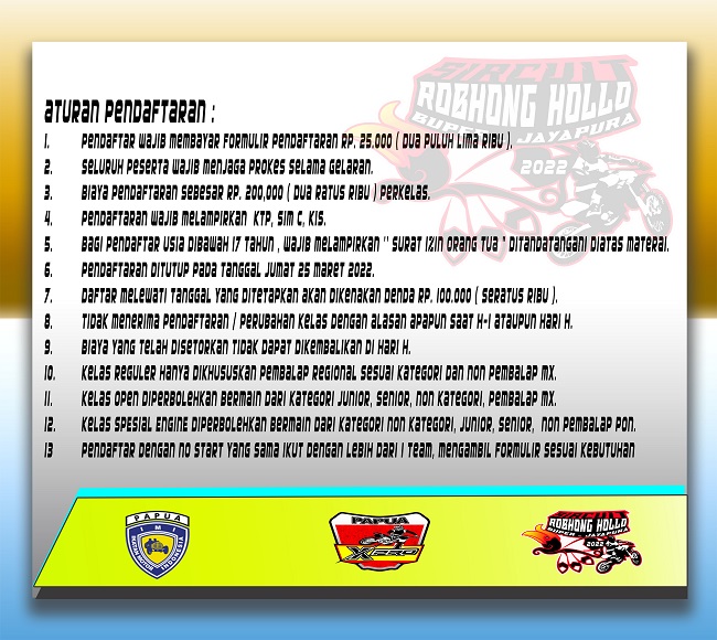 Peresmian Sirkuit Robhong Hollo Buper Jayapura yang digelar sehari tersebut dilaksanakan atas kerjasama Keluarga besar Pepuho dan X-Pro Papua.