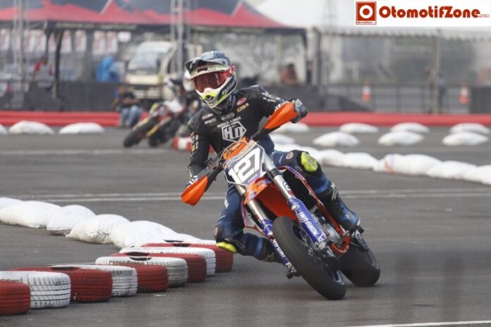 OtomotifZone.com-Jakarta. Putaran final Super Adventure Kejurnas Supermoto sirkuit PRJ Kemayoran Jumat dan Sabtu 27-28 Oktober 2023 akan menjadi putaran final yang cukup dramatis khusus kelas FFA 250 open. Dikarenakan pada kelas ini poin pimpinan klasemen sementara dan asik-asiknya. Ada sosok Farudila Adam yang memperkuat tim 64Squad tak lain pembalap yang memimpin klasemen mendapat tekanan gap tipis dari Tommy Salim.