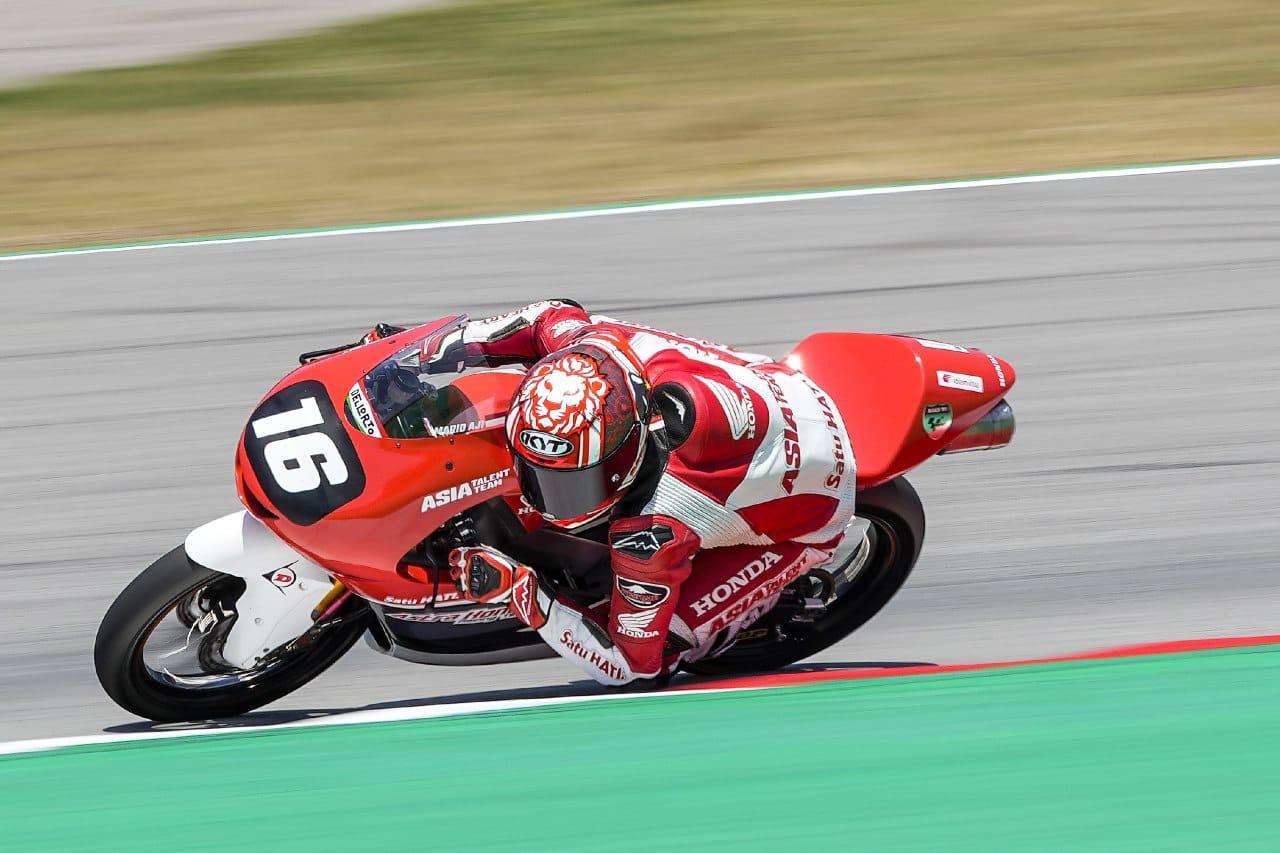 OtomotifZone-Barcelona – Perjuangan Mario Suryo Aji membanggakan Indonesia menjadi semakin nyata dengan raihan gemilang pada sesi kualifikasi FIM Moto3™️ Junior World Championship putaran Barcelona pada Sabtu (12/6). Pebalap muda binaan Astra Honda Racing Team (AHRT) ini mencetak sejarah baru di dunia olahraga balap sebagai pebalap Indonesia pertama yang meraih pole position di gelaran CEV.