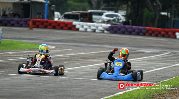 OtomotifZone.com-Sentul Bogor.. Hanya dan hanya beda waktu 0.033 detik saja persaingan kelas Micro Max antara Ariel Andhika Bahran dengan rival Klasiknya sejak seri 1 debutan baru Rava Mahpud akhirnya dimenangkan pegokart berkacamata asal UI Racing Team Ariel Andhika Bahran.